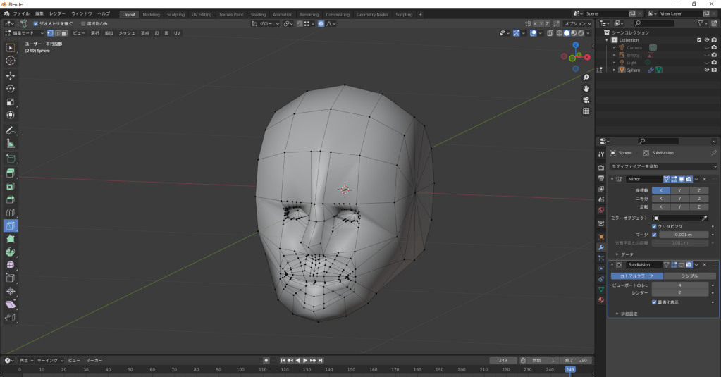 やる気の問題で顔ができるとそれっぽいかな?と思い、今日は顔の作成練習。けど、これまじキツイ…